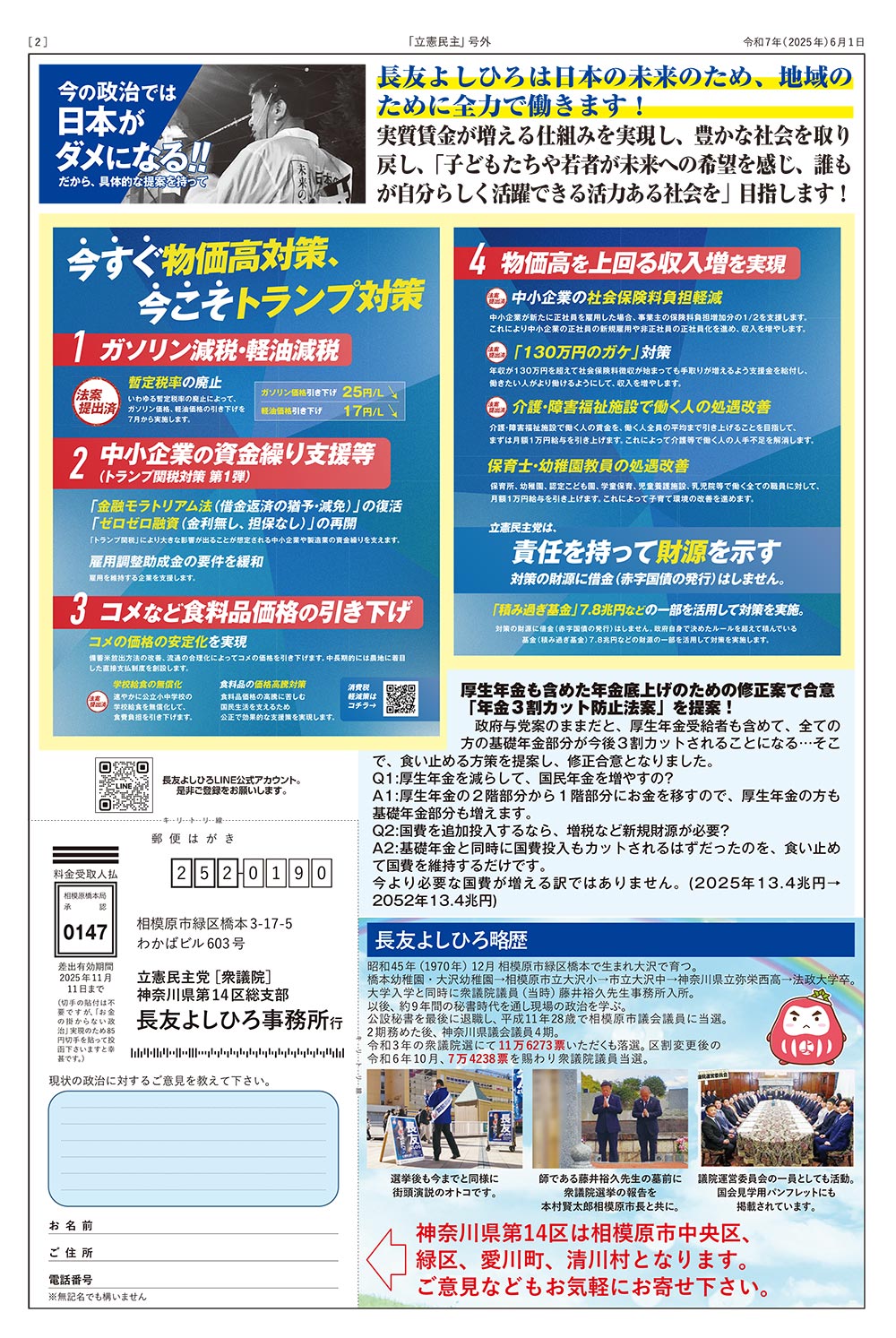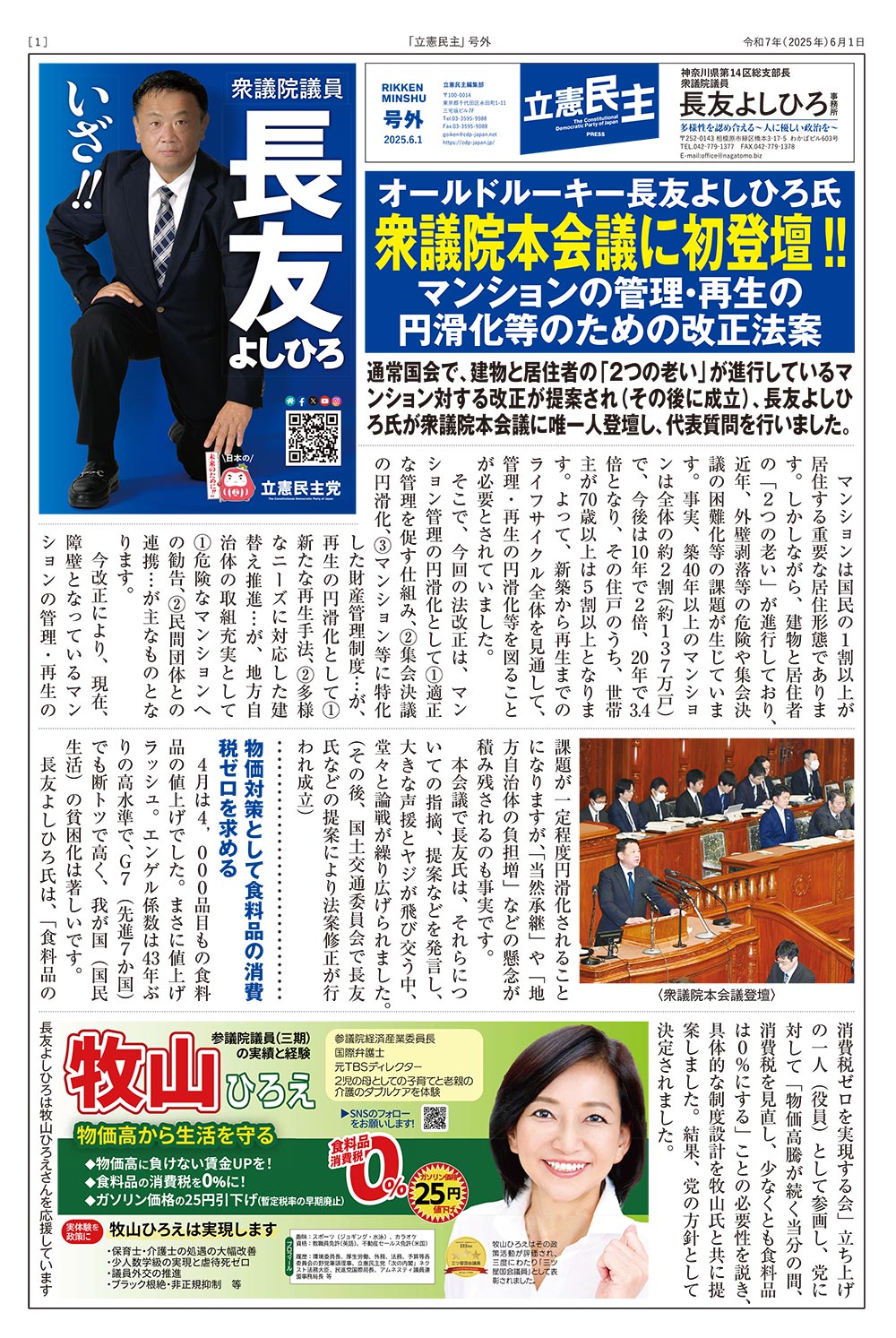 立憲民主号外2025.6.1号を発行しました。